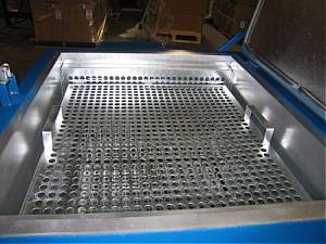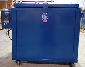 Project Background:Rotating equipment planners at a manufacturer of chemicals and derivatives contacted us seeking an industrial process oven that could preheat a batch of steel bottles for storing chemicals. The process involved placing the bottles into the preheat oven in order to bake out any impurities or moisture within the bottle before the chemical was placed inside. The target temperature was 400F. The clients requested that the oven be top-loading so the bottles could be loaded down into the oven. Also, a top shelf was needed for the bottle lids.Below are some other specifications requested by the client: For this particular application we designed a custom industrial preheating oven from scratch and called it the K-TL30. This is a solid oven that rests on heavy-duty steel casters. This oven features a locking single-door lid that can be easily lifted by grabbing the secure steel handle. The lid was installed with cold-rolled steel butt hinges that were tack welded to ensure solid door usage for many years. We fulfilled the special requests as we always strive to do with our customers. As for shelving, the equipment specialists wanted perforated steel shelves to allow heat to permeate the oven evenly and radiate to the top shelf where the lids were to be stored. We made the oven shelving adjustable, as requested. The K-TL30 preheat oven is insulated all around, including the lid to ensure containment of heat and rapid preheating. The K-TL30 preheating oven rests on tack welded steel casters to enable free movement of the oven around the workplace and to different workstations. This custom oven is useful for a variety of purposes, not just for chemical bottles. The temperature range can be modified for any application. A programmable digital controller was installed for this oven so the temperature reading would remain very accurate and the temperature control could be adjusted for different applications. K-TL30 Industrial Oven Specifications: Shelving Style: Perforated Steel - One Lower Shelf / One Upper Shelf Oven Construction ExteriorThe K-TL30 heat treating oven is constructed of carbon steel throughout. The oven exterior has a highly durable, powder-coat finish in blue that is resistant to scratching and corrosion. This a top-loading, floor-positioned preheating oven and is designed to be stored on a floor for ease of access to the parts being preheated. Perforated shelving was installed on this batch oven to evenly distribute the heat around the steel bottles. The lid hinges are tack-welded to ensure smooth operation for many years. The control panel which houses the digital PID is mounted on the side of the oven with heavy-duty rivets. A standard "ON/OFF" indicating light was also provided, which is bright enough to be seen from a distance. A variety of temperature control methods are available. The K-TL30 preheating oven rests on tack welded steel casters to enable free movement of the oven around the workplace and to different workstations. There is also a hook-lifting arrangement at the to of the preheat oven with a load capacity of 500 lbs beyond oven weight. InteriorThe interior of the K-TL30 is unique and features a custom-designed adjustable shelving system. Various shelving styles are available which are suitable for almost any custom preheating application. The elements are installed in the the sides of the oven which allows the heat to radiate inwards and around the oven. The heating elements are housed in element guards to protect users from coming in contact to the elements. The interior of the K-TL30 preheating oven is painted with a reflective, galvanized paint and the interior welds are touched up with high-temperature aluminum paint. All our preheating ovens are made in the USA and feature a 1-year limited manufacturer's warranty. Parts are readily available.