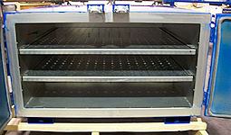 Brief Product Description:The Keen K-PH12 is a floor level, custom industrial oven with natural convection This heavy-duty double-door oven is an excellent low cost solution for a wide variety of heat processing applications. Forklift pockets at the oven base allow for easy transport of the unit. High-quality, heavy-duty latches secure the double doors tightly. Also featured on this industrial oven are removable, heavy-duty perforated shelves to accommodate different sized loads. Applications:Keen industrial ovens are used in a wide variety of industries for many different applications. The K-PH12 industrial oven can be used for annealing, heat-treating, curing, drying or simple batch processing of parts for preheating and postheating. Our industrial ovens are produced in the USA with the highest quality material, components and workmanship. Please contact us today for a quote on the K-PH12 industrial oven as displayed on our website or allow us to provide a modified design or an entirely new unit suitable for your specific application. Keen Industrial Ovens customer service: