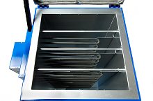 Thorough, energy-efficient and quick heating of welding flux is the hallmark of all Keen flux ovens. The KF-600 in particular has twenty-seven elements evenly dispersed throughout the flux oven hopper cavity. When loaded with flux, no more than 2” of flux is without direct heating. It is important to note that our flux ovens are designed to reduce watt density to the elements, eliminating the problem of flux fusing to the heating elements which is a common problem seen in competing brands. Fusing of flux often creates a “gumming” effect causing the granulated material surrounding the elements to meld together.