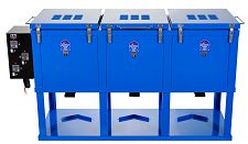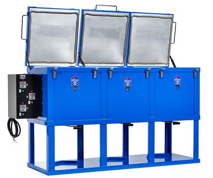 Keen KF-900 flux ovens are primarily designed for centrally-located storage of multiple types of welding flux within one unit. Feedback from a variety of Keen customers has led us to this design because while some customers prefer the mobility of single hopper flux ovens, others favor large capacity ovens positioned in an area that is easily accessible from different work stations. The KF-900 design is unique because within a single oven there is a combination of 3 separate but connected hoppers, each thermostatically controlled with its own digital microprocesser. This enables the user to store 3 different types of welding flux within one oven, and each hopper can set to a different temperature depending upon the type of flux stored within that hopper.