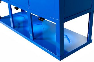 The subarc flux is top-loaded by way of a hinge-supported lids on each hopper. They are easily lifted manually, and the flux is discharged through a slide valve located on the bottom of each hopper. Handy, fixed steel bars that stretch across the hopper opening allow the easy emptying of new flux from unopened factory packaging. The flux bags can be placed across these bars, cut open and emptied into the oven hopper. When flux needs to be removed, a container is placed by the user beneath the hopper to catch the granulated flux as it is dispensed. The hoppers are securely mounted onto a stationary, heavy-duty stand.