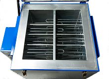 As standard equipment, Keen KHTF-1000 flux ovens feature a UL® approved programmable PID microprocessor with digital temperature control and LED temperature-indicating display. The temperature reading can be displayed in either Fahrenheit or Celsius, and has a ±0.2 degree accuracy. Handy tactile increment/decrement keys on the controller’s water-resistant front panel enable easy temperature set point adjustment. The controller also features an on/off control mode. The standard control unit supplied with the KHTF-1000 flux oven is programmable for standard operation, and an upgraded “ramp & soak” version is available.