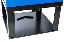 Subarc flux is top-loaded by way of a hinge-supported lid that is easily lifted manually, and discharged through a slide valve located on the bottom of the unit. Handy, fixed steel bars that stretch across the hopper opening allow the easy emptying of new flux from unopened factory packaging. The flux bags can be placed across these bars, cut open and emptied into the oven hopper. When flux needs to be removed, a container is placed by the user beneath the hopper to catch the granulated flux as it is dispensed. The hopper unit is securely mounted onto a stationary, heavy-duty stand.