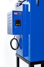 The welding flux temperature inside the oven is regulated and controlled by a field-adjustable, digital controller with bright, LED temperature indicating display (user can switch from Celsius and Fahrenheit). This microprocessor is housed in a control box on the side of the flux oven hopper, along with a separate on/off indicating red light. This light enables users to quickly view from a distance if the oven is receiving power or has been shut off.